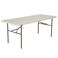 - Features a single piece, commercial grade blow moulded plastic resin top with a reinforced, folding steel frame for stability and strength