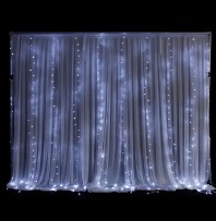 White Backdrop Curtain with Subtle Glitter Organza with Satin Silk Backing (3m * 3m) Hire Price: $90.00 & Cool White Fairy Lights Hire Price: $40.00.