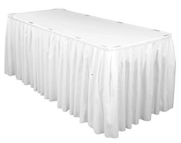 White & Black Table Skirting Hire Price: 1 table 3.7m is $40.00, 2 tables 5.2m is $50.00, 3 tables 7m is $60.00