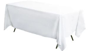 - White 100% Polyester 6ft Trestle Table Cloths are 153cm * 259cm with even (lap level) 39cm drop